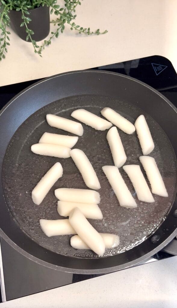 Fresh rice cakes give the best texture. They’re already soft and pliable and cook beautifully. However, frozen rice cakes work perfectly well too, as long as you thaw them fully before cooking. Soak frozen rice cakes in cold water until they’re completely soft and separated, then drain well before adding to the pan. Never add frozen rice cakes directly to the sauce as they’ll take too long to cook through and can make the sauce watery as they release excess water.