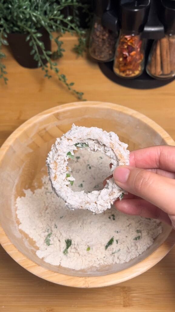 4. Coat the onion rings