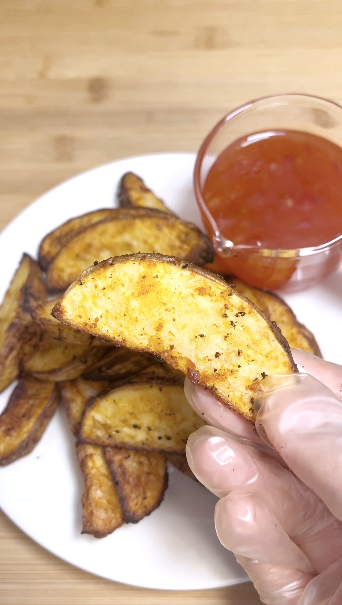 - Rest and serve: Let wedges rest for 1–2 minutes after cooking. Sprinkle a pinch of extra salt and serve immediately while hot with sweet chilli sauce or any sauce you like.