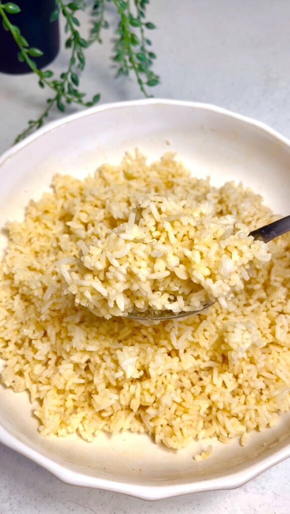 - Use day-old rice: cold, slightly dry rice gives the best separated, fluffy texture.